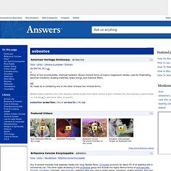 4.1 CHEMICAL IDENTITY Asbestos is a generic term for a group of six naturally-occurring, fibrous silicate minerals that have been Health regulatory agencies use a more limited definition of asbestos fibers, and therefore, ... Return Document